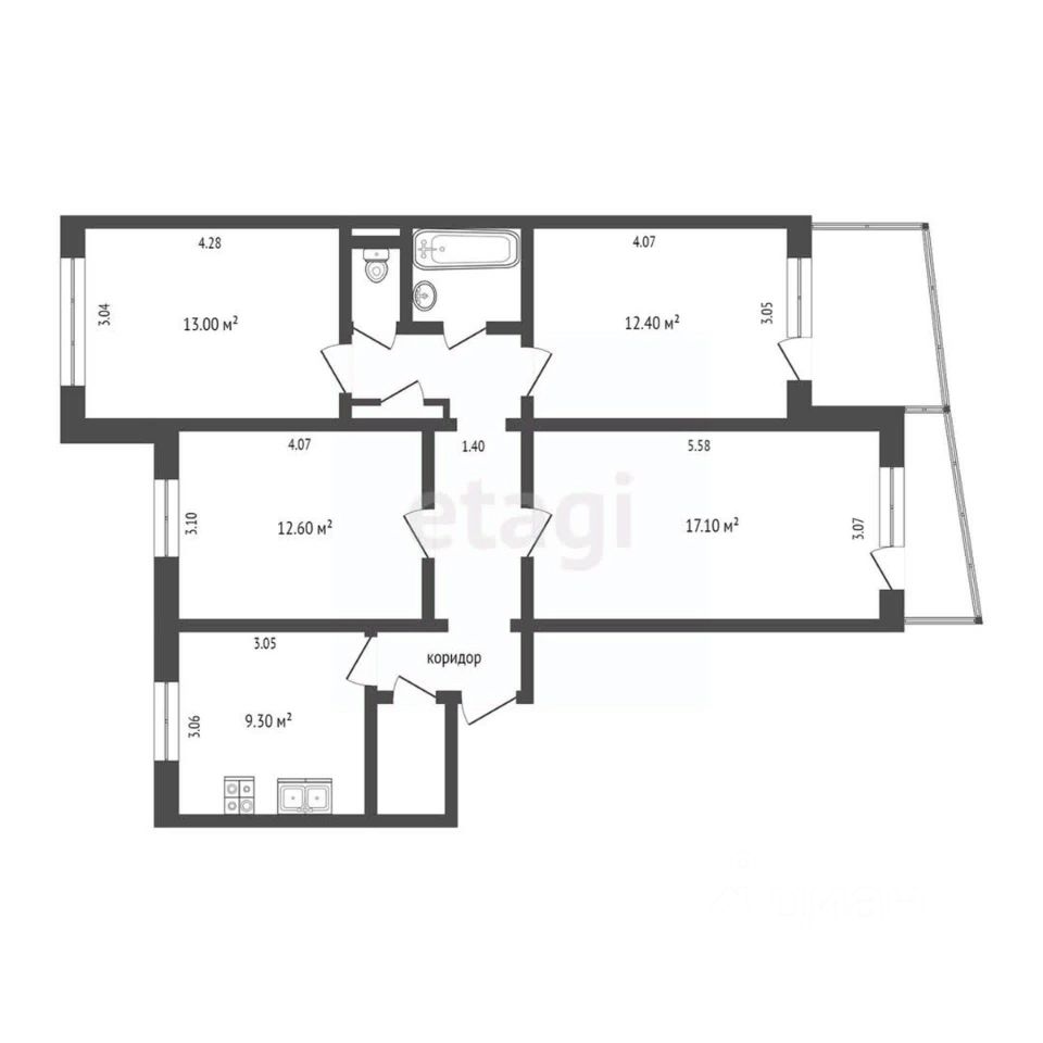 Продам отличную 4-комнатную квартиру в районе Лесобаза-Казачьи Луга. Квартира-распашонка общей площадью 80,8 кв м, с функциональной планировкой - четыре изолированные комнаты (17,1; 12,4; 13,0; 12,6 кв м), кухня 9,3 кв м, раздельный санузел, гардеробная и два балкона. Квартира с ремонтом,заезжай и живи! Чистый подъезд, порядочные соседи.