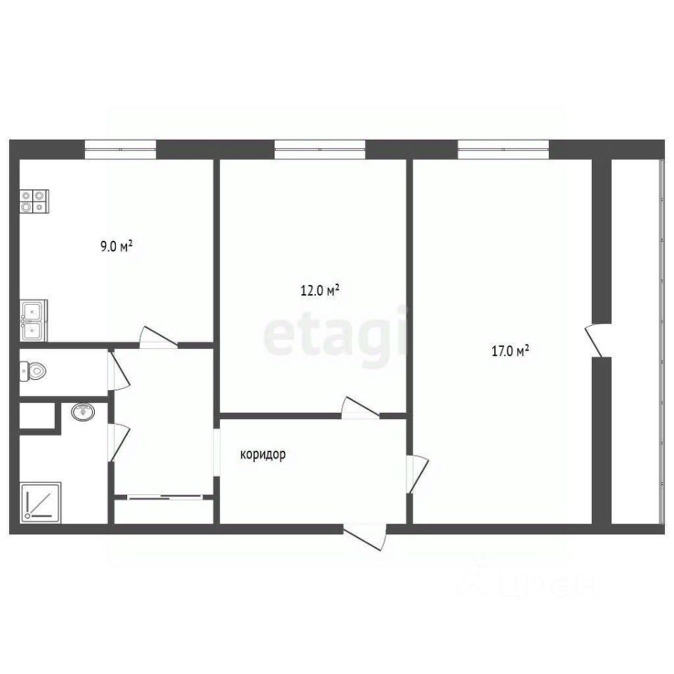Двухкомнатная квартира общей площадью 49.8 кв.м. в микрорайоне с развитой инфраструктурой Южный.