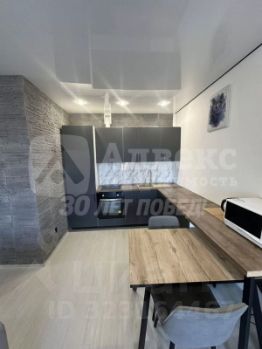 встроенный холодильник, духовой шкаф, плита, микроволновая печь, а также стильная кухонная мебель,