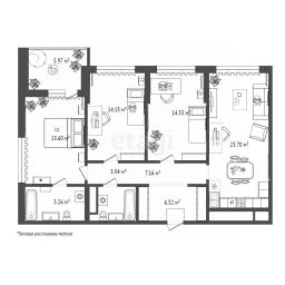 Трехкомнатная квартира в жилом комплексе "Дивный квартал у озера" сочетает удобную планировку, качественную подготовку под чистовую отделку и выгодное расположение в развивающемся районе. Пространство организовано рационально: все комнаты правильной формы, два раздельных санузла, две застекленные лоджии. Окна выходят во двор и на пешеходный бульвар, часть из них расположена на солнечной стороне. Черновая отделка выполнена с учетом современных стандартов: цементно-песчаная стяжка пола, стены выровнены под маяк, выполнена горизонтальная разводка отопления, установлены розетки и выключатели, что упрощает дальнейший ремонт. В квартире уже есть пластиковые окна, железная входная дверь и счетчики воды.
