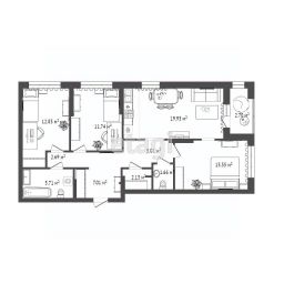 Улучшенная черновая отделка: цементно-песчаная стяжка пола, стены выровнены под маяк, установлены розетки и выключатели, горизонтальная разводка отопления. Окна выходят на прогулочный пешеходный бульвар. Функциональная планировка: мастер-спальня, 2 детских комнаты, просторная гостиная и гардеробная.