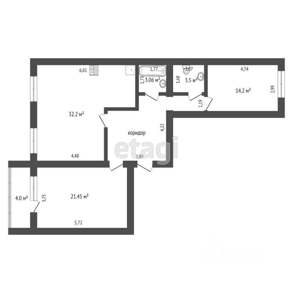 По планировке есть возможность выделить третью стальную комнату , по плану была перегородка , разделяющая кухню-гостиную на 2 комнаты.