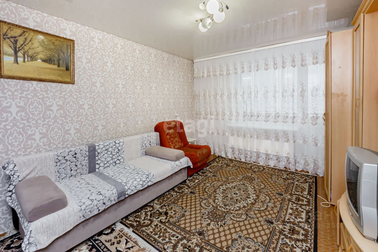 Однокомнатная квартира в кирпичном доме. Общая площадь квартиры 33,8 кв.м, комната и кухня изолированы, санузел раздельный, из комнаты выход на просторную лоджию. Квартира с косметическим ремонтом: на стенах обои, на полу линолеум, натяжные потолки, лоджия остеклена. При продаже в квартире остаётся мебель и техника: кухонный гарнитур, обеденная зона, электроплита, холодильник, диван. корпусная мебель "Стенка". Дом находится в мкр. Восточный с развитой инфраструктурой, в шаговой доступности детские сады, школа.