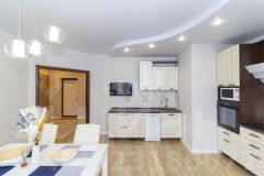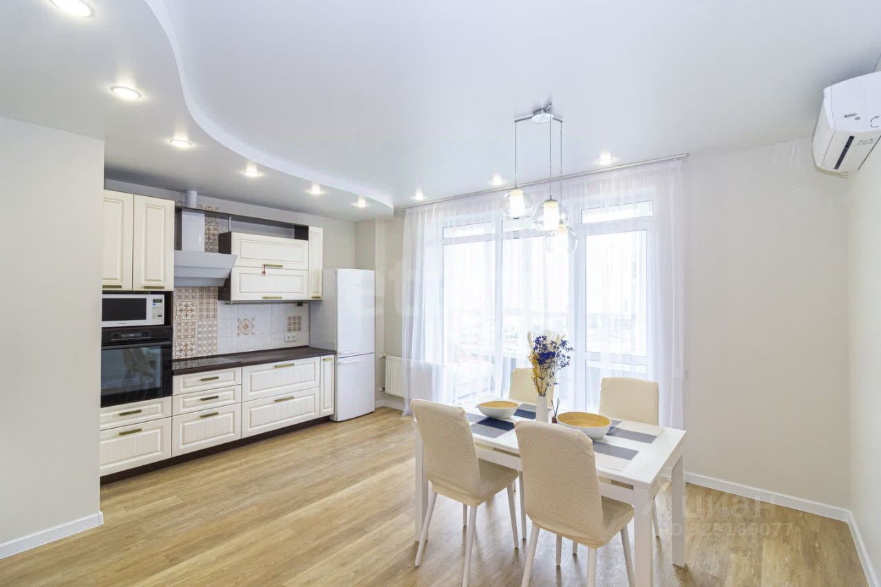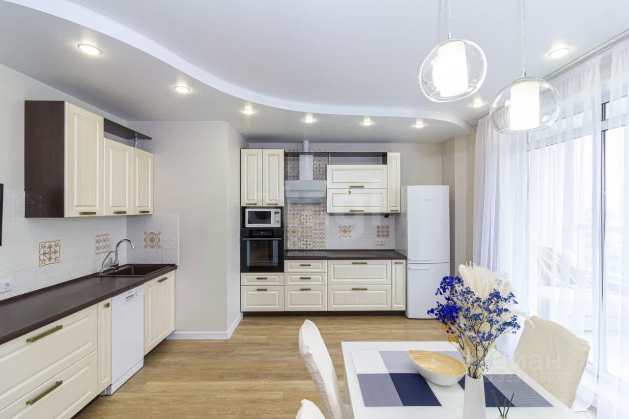 Уважаемые покупатели! Обратите внимание - идеальная квартира для большой семьи! Чудесная планировка - три изолированные просторные спальни, большая кухня-гостиная оборудованая всем необходимым: кухонным гарнитуром со встроенной бытовой техникой, холодильником, духовым шкафом, варочной поверхностью, вытяжкой, посудомоечной машиной, микроволновой. Светлая, просторная, она нравится с первого взгляда: просторная прихожая с вместительным шкафом, два санузла, огромные панорамные окна с выходом на балконы, их в квартире два и оба большие с понарамным остеклением и современной отделкой.