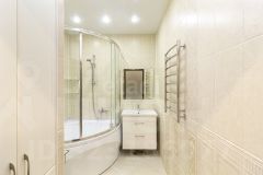 Свежий ремонт, после которого никто не жил в квартире: кварцвениловое напольное покрытие, однотонные светлые обои, санузлы с местом для стиральной и сушильной машины, шкафами для хранеия бытовой химии и полотенец, в каждой комнате есть встроенные шкафы. Все обустроено разумно и со вкусом.