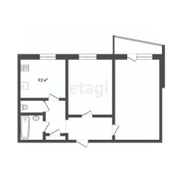 Продаётся двухкомнатная квартира общей площадью 50,4 м², расположенная на первом этаже девятиэтажного жилого дома. Квартира имеет следующую планировку: