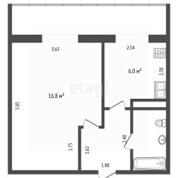 Хорошая квадратура 36,4 м2 (данные ЕГРН, такая площадь указана в документах)