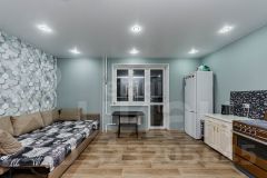Сделан свежий ремонт, на полу линолеум хорошего качества, санузел в кафеле,натяжные потолки,пластиковые окна. Балкон застеклен пластиком. Высокие потолки.