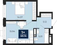 1-комн. квартира от застройщика с предчистовой отделкой в ЖК "Айвазовский City" на 11 этаже. Общая площадь: 40.14 кв.м., жилая: 14.07 кв.м., площадь просторной кухни-столовой: 15.94 кв.м. Все окна выходят на одну сторону. В квартире один совмещенный санузел. Высота потолков 2.7 м.