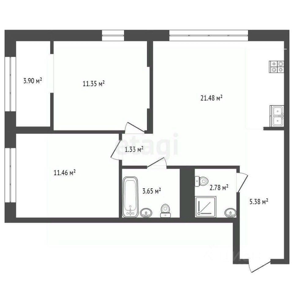 При продаже остается вся встроенная корпусная мебель, включая кухонный гарнитур и бытовая техника с холодильником.
