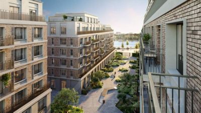 •"Речной порт" — это современный жилой район, состоящий из пяти кварталов переменной высотности с камерными зелёными дворами, подземным ом и полезными сервисами на первых этажах.