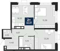 Продается двухкомнатная квартира с предчистовой отделкой в ЖК "Айвазовский City" на 13 этаже. Общая площадь: 62.27 кв.м., жилая: 28.66 кв.м., площадь просторной кухни-столовой: 16.22 кв.м. Квартира угловая, идеально подойдет любителям тишины и панорамных видов. В квартире один совмещенный санузел. Высота потолков 2.7 м.
