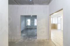 Квартира с двумя большими террасами , площадь обоих около 100 кв.м. Кухня- гостиная 26,36 кв.м. и три просторные спальни, одна из которых со своим сан.узлом. Есть еще один сан.узел 5,3 кв.м..Отделка улучшенная черновая, ровный пол, стены под маяк. Окна выходят во двор..