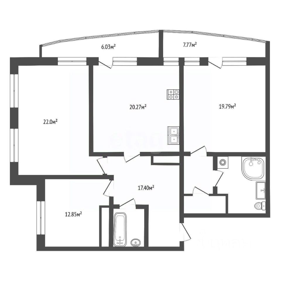Просторная и светлая 3 комнаты на последнем этаже (с техэтажом никакого шума сверху!).