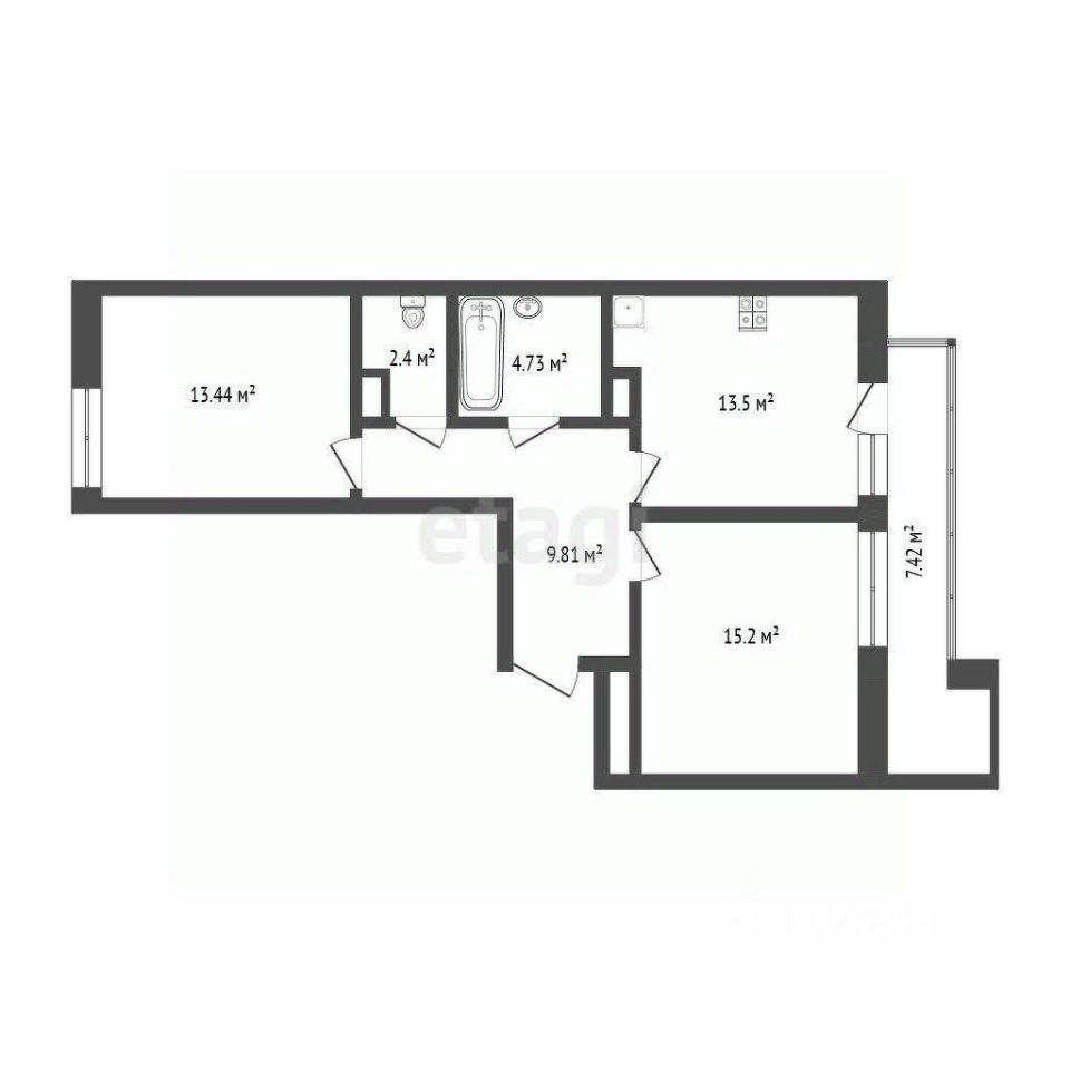 Общая площадь — 59 м².