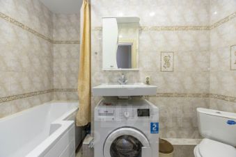 Просторная и светлая квартира с ремонтом в светлых тонах — полностью готова к проживанию. На полу ламинат, натяжные потолки, на стенах обои. Санузел выложен плиткой. Всё, что вы видите на фото, остаётся при продаже, что позволит сразу заехать без дополнительных затрат.