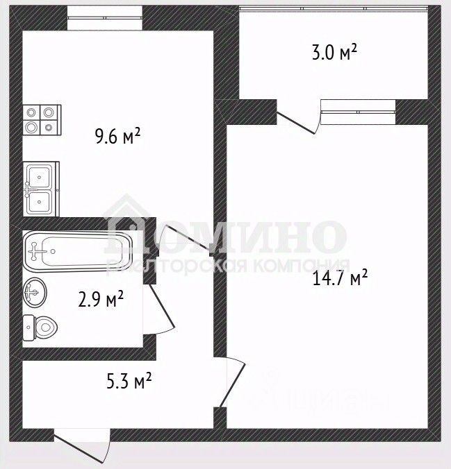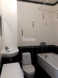 Покупателю остаётся кухонный гарнитур с варочной поверхностью и духовым шкафом, холодильник, микроволновка, обеденный стол с табуретками на кухне; шкаф, диван, комод, мебельная стенка с телевизором в спальне; сантехника, стиральная машина в ванной.