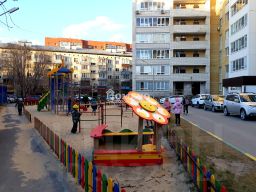 Двор дома полностью закрытый от посторонних - огороже забором, вход через калитки по ключу от домофона. По периметру дома и в подъездах установлены видеокамеры наблюдения для большей безопасности и комфорта.