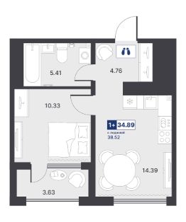 Продаётся 1-комнатная квартира в строящемся доме (ГП-1 (Менжинского, 10к1)), срок сдачи: III-кв. 2027, общей площадью 34.89 кв.м., на 5 этаже. Новый жилой комплекс от Специализированного застройщика "Звезда" расположен по адресу: г. Тюмень, по ул. Менжинского.