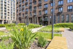 - Современная архитектура и оснащение: подземный паркинг, благоустроенный двор с ландшафтным дизайном, авторские холлы, увеличенные окна, видеонаблюдение, бесшумные лифты.