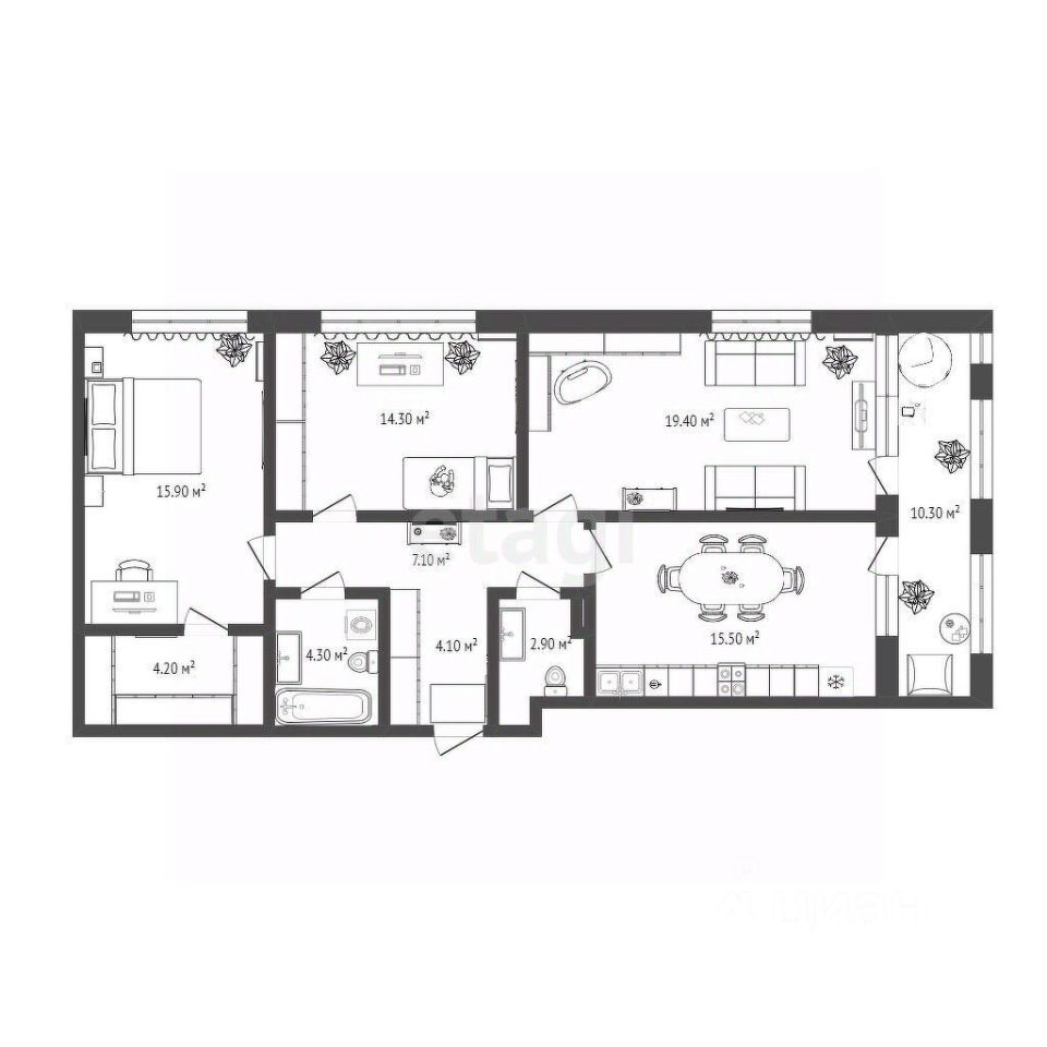 97,4 м²