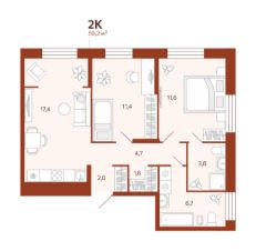 Продаётся 2-комнатная квартира в строящемся доме (ГП-2 (Новаторов, 30)), срок сдачи: IV-кв. 2025, общей площадью 59.2 кв.м., на 6 этаже. Новый жилой комплекс "Новатор" от застройщика ГК "СБК" расположен по адресу: г. Тюмень по ул. Новаторов.