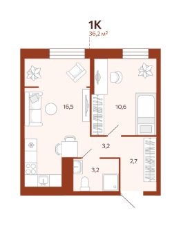 Продаётся 1-комнатная квартира в строящемся доме (ГП-2 (Новаторов, 30)), срок сдачи: IV-кв. 2025, общей площадью 36.2 кв.м., на 6 этаже. Новый жилой комплекс "Новатор" от застройщика ГК "СБК" расположен по адресу: г. Тюмень по ул. Новаторов.