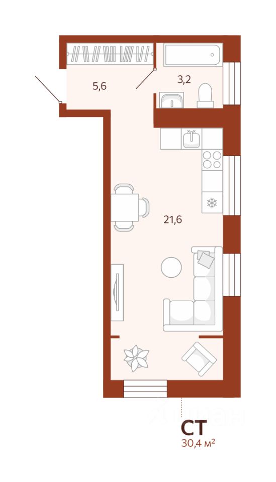 Продаётся студия в строящемся доме (ГП-2 (Новаторов, 30)), срок сдачи: II-кв. 2026, общей площадью 30.4 кв.м., на 7 этаже. Новый жилой комплекс "Новатор" от застройщика ГК "СБК" расположен по адресу: г. Тюмень по ул. Новаторов.