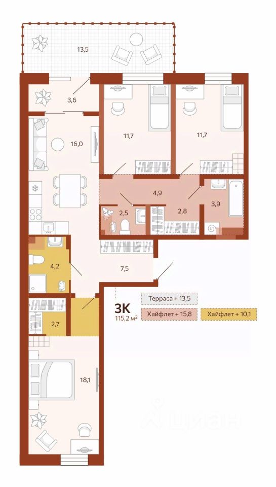 Продаётся 3-комнатная квартира в строящемся доме (ГП-2 (Новаторов, 30)), срок сдачи: IV-кв. 2025, общей площадью 89.3 кв.м., на 1 этаже. Новый жилой комплекс "Новатор" от застройщика ГК "СБК" расположен по адресу: г. Тюмень по ул. Новаторов.