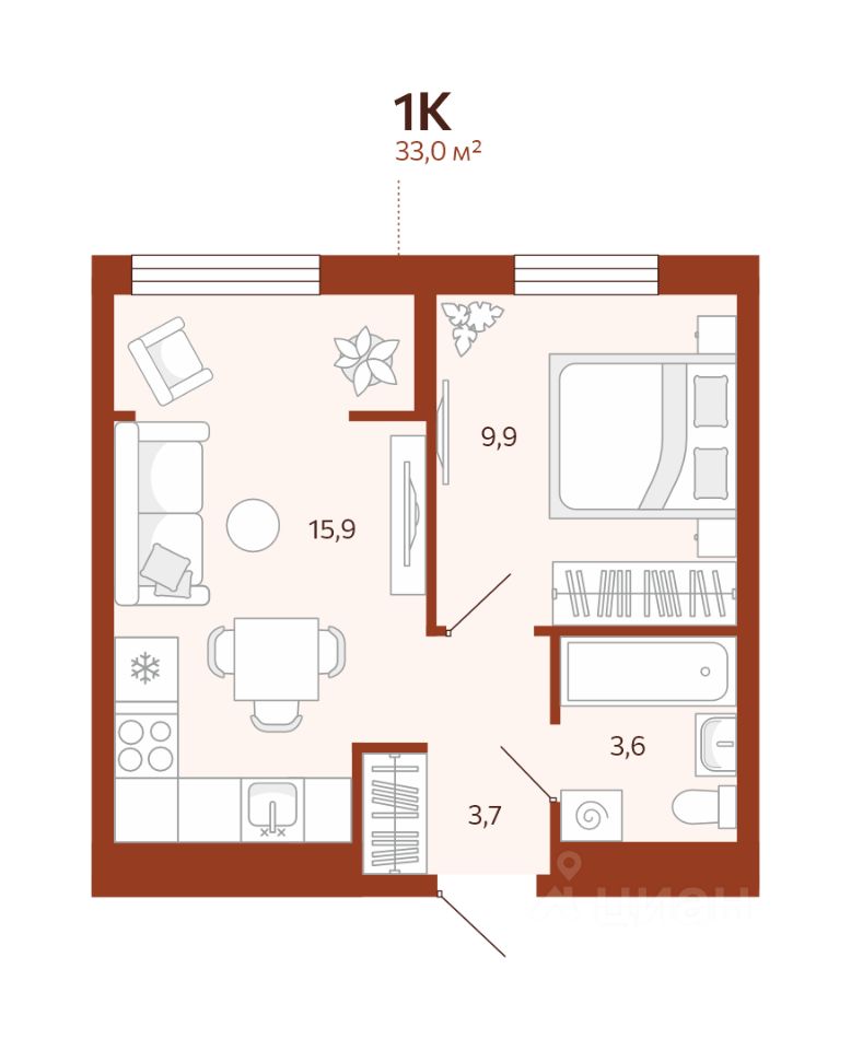 Общая площадь33 м²