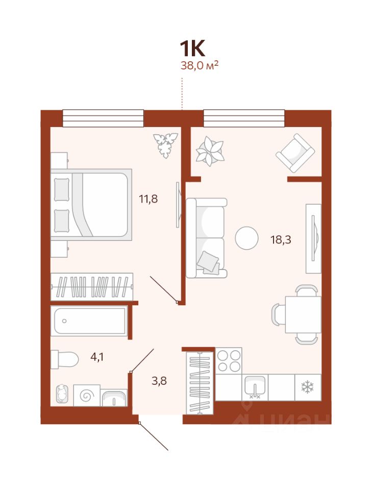 38 м²