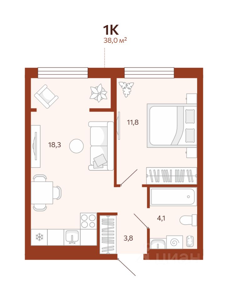 38 м²