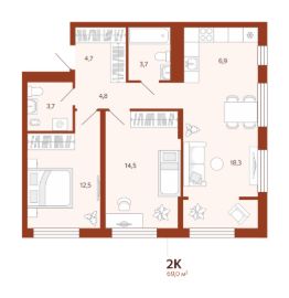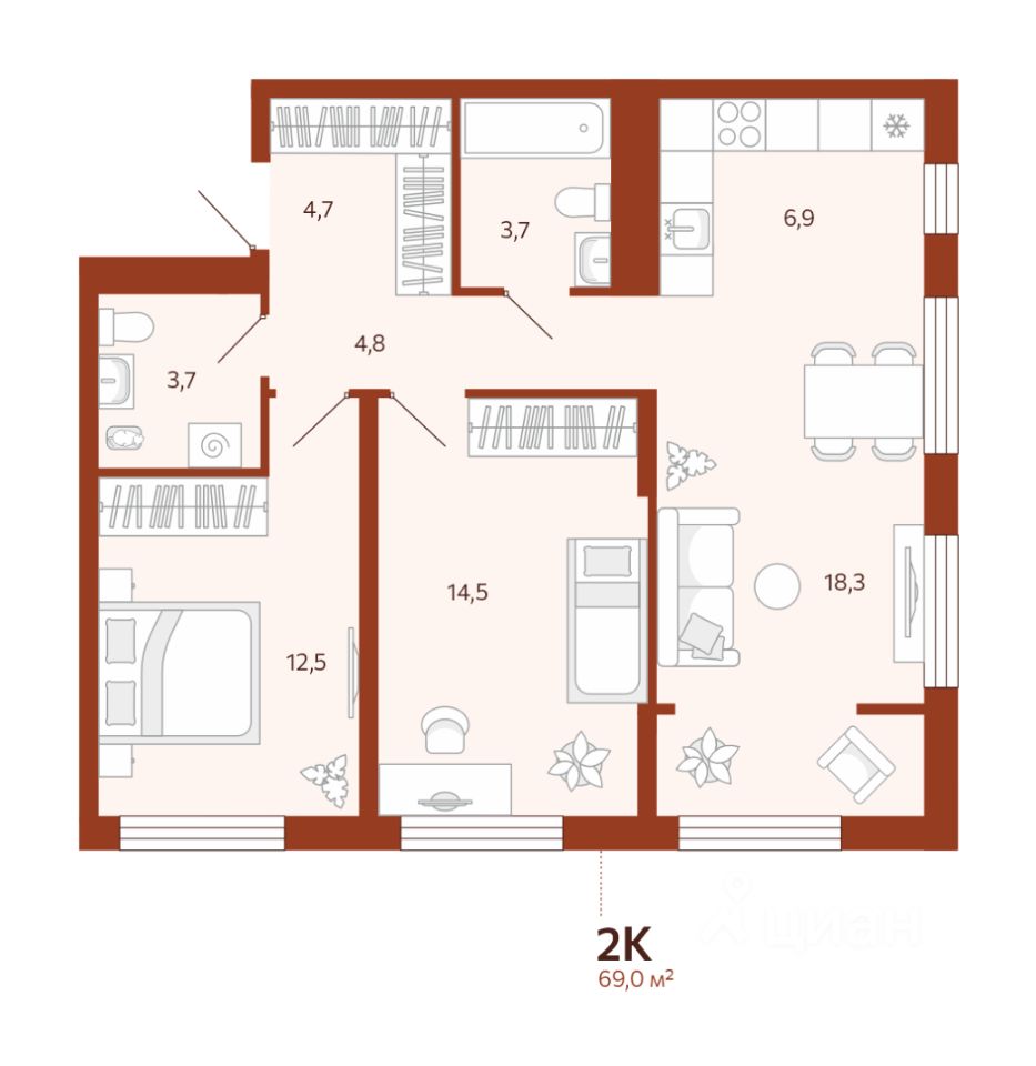 Продаётся 3-комнатная квартира в строящемся доме (ГП-1 (Новаторов, 28)), срок сдачи: IV-кв. 2025, общей площадью 69 кв.м., на 7 этаже. Новый жилой комплекс "Новатор" от застройщика ГК "СБК" расположен по адресу: г. Тюмень по ул. Новаторов.