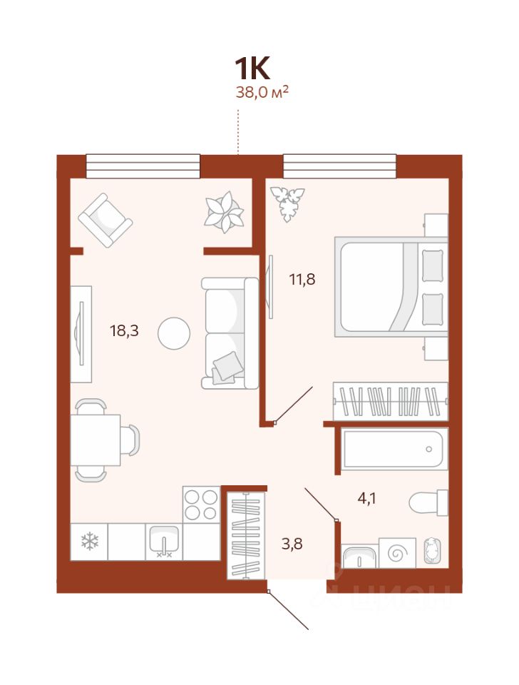 38 м²