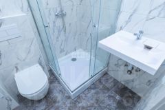 В квартире выполнен современный и качественный ремонт. На полу выложен ламинат и керамогранитная плитка, на стенах — обои нейтральных цветов. Окна выходят на север. Площадь кухни — 7 кв.м.