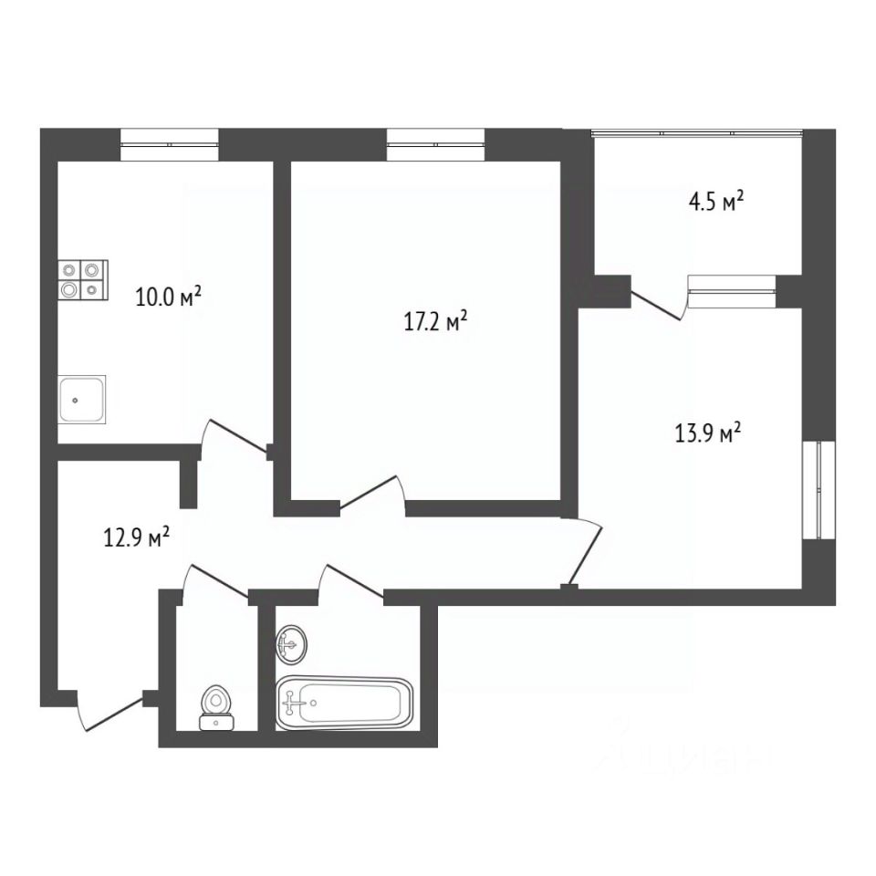 Квартира с функциональной удобной планировкой площадью 59 кв.м.