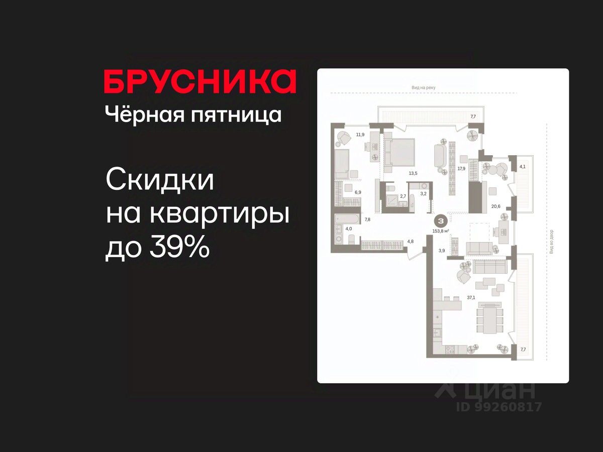 Квартира с кухней-гостиной и тремя спальнями в Октябрьском на Туре. Особенности планировки: гардеробная, окна в пол, без отделки, вид на реку, вид во двор, свободная планировка, мастер-спальня, терраса, постирочная, терраса на крыше.