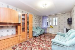 Один из плюсов данного варианта - просторная застекленная лоджия. Классическая планировка квартиры - большая гостиная, которую можно зонировать, вместительный коридор и совещенный сан.узел.