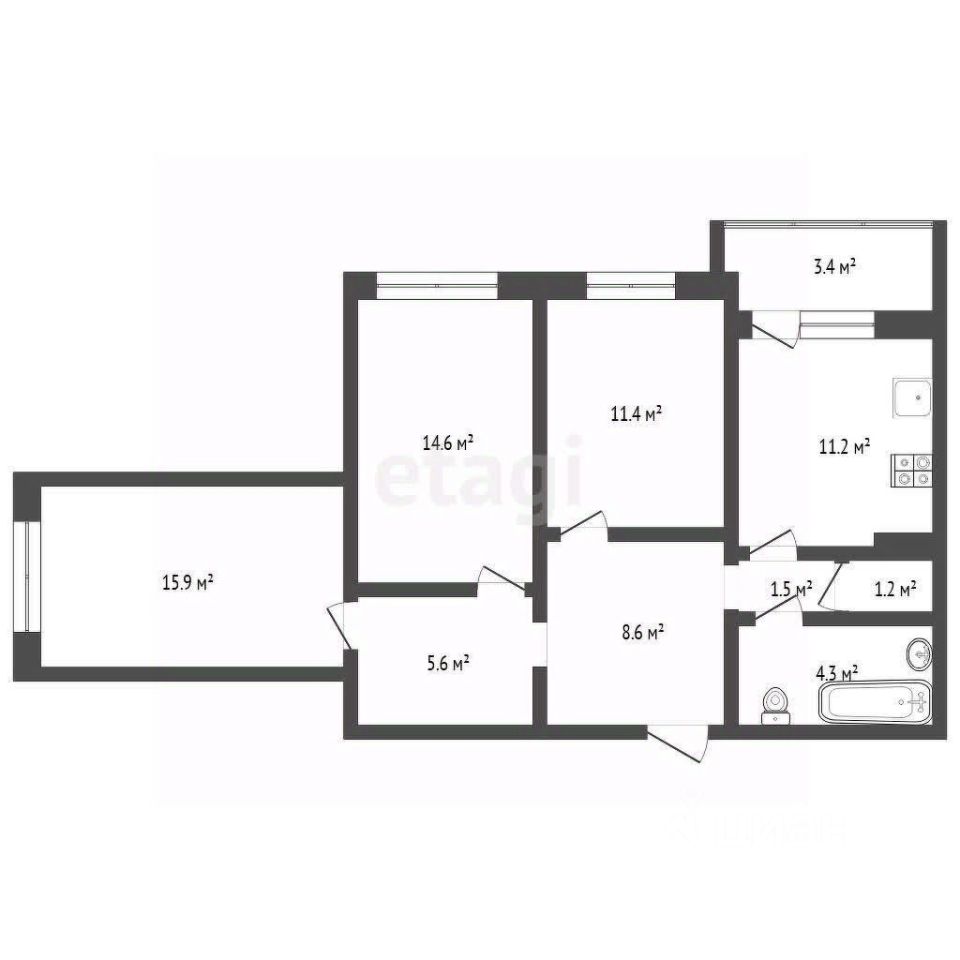 *Трёхкомнатная квартира на Николая Зелинского, 74.7 м², 13 этаж*