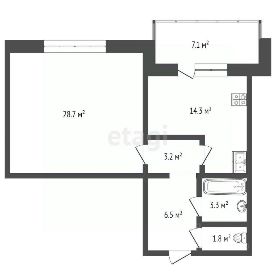 этажного дома. Комната-28,7м2, кухня-14,3м2, раздельный санузел. В