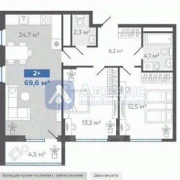 Продается просторная квартира формата 2+ общей площадью 69,6 м2.