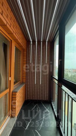 Лоджия с отделкой черным керамогранитом и встроенной подсветкой оборудована теплым полом.