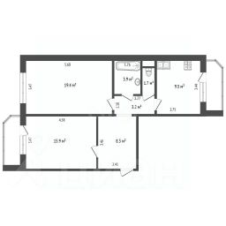 Светлая двухкомнатная квартира площадью 62 кв.м