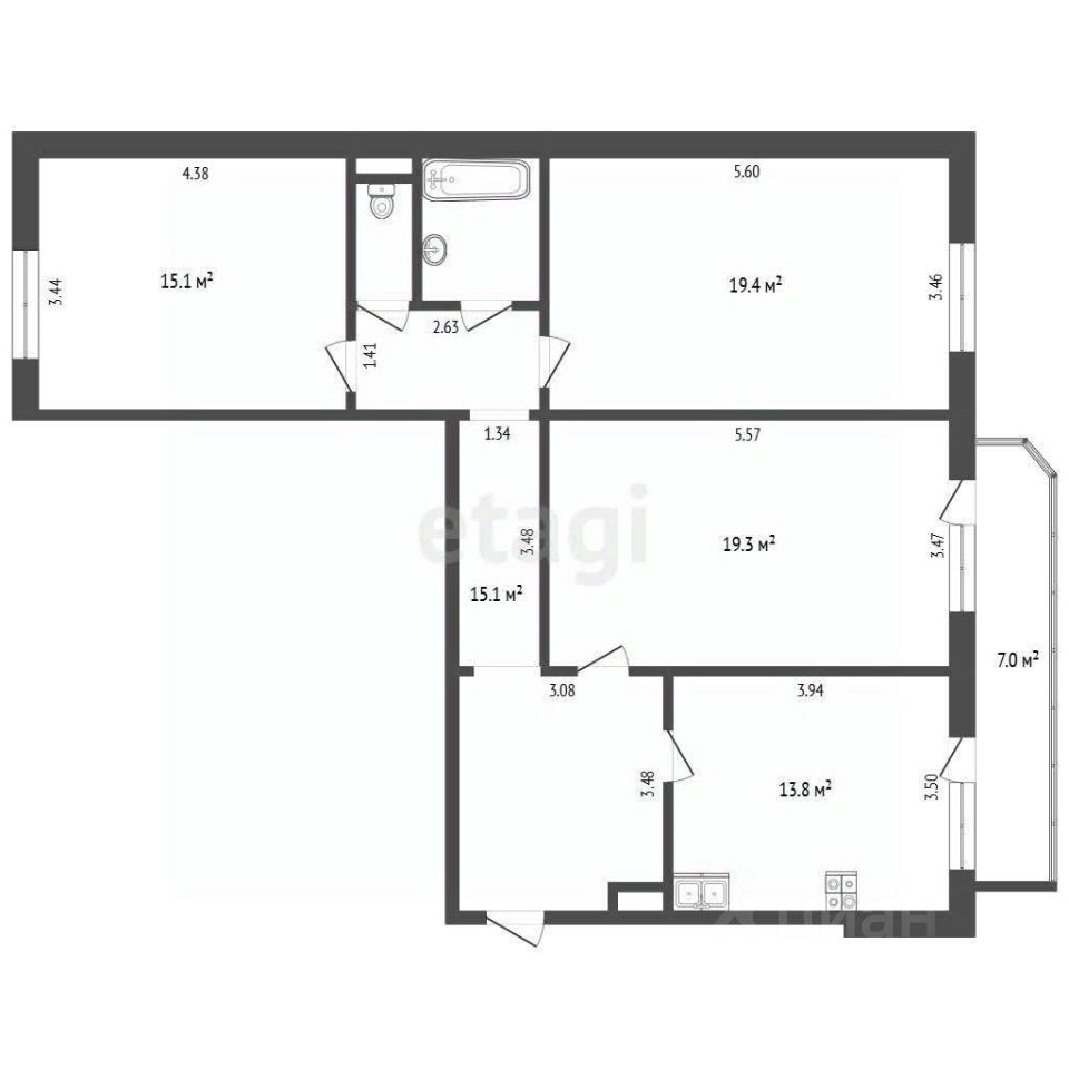 Планировка : все три комнаты изолированы, что обеспечивает приватность для каждого члена семьи.