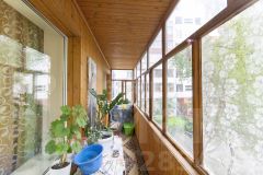 Раздельный санузел повышает удобство ежедневного использования. Ключевой особенностью является большая застекленная лоджия с двумя выходами — из гостиной и кухни. Это пространство не только увеличивает полезную площадь, но и выполняет функцию буферной зоны, эффективно снижая уровень уличного шума.