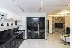 - Просторная гостиная-кухня площадью 36.3 кв.м., совмещенная с застекленной лоджией, дарит роскошный панорамный вид на водную гладь и городские пейзажи.