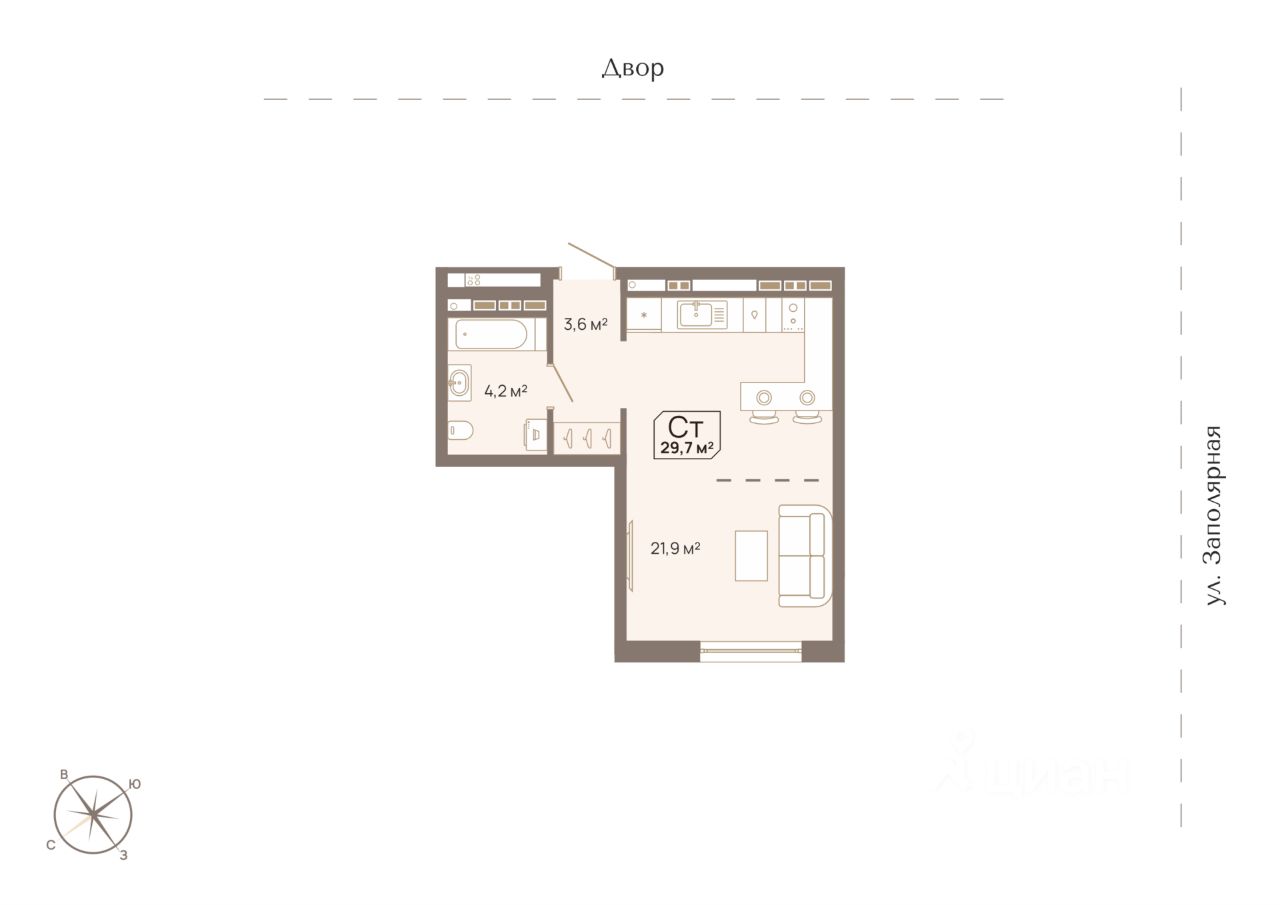 Продается студия, 29,7 м²