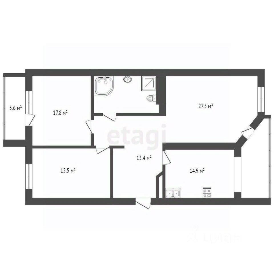 Планировка квартиры продумана до мелочей: она разделена на общественную и приватную зоны. В приватной части расположены две светлые спальни (одна из которых может стать детской или кабинетом), просторный санузел.