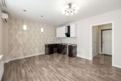 Просторная квартира выполнена в светлых тонах, что создает ощущение особого уюта и наполняет пространство естественным светом. Установлены натяжные потолки по всей площади, смонтирована система освещения, включая стильную подсветку кухонного гарнитура. Все коммуникации аккуратно выведены для плиты. Санузел совмещенный, полностью подготовленный, с установленной ванной, раковиной и унитазом, имеется вытяжка. Подведены трубы для подключения стиральной машины и бойлера.