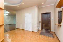 Планировка квартиры продумана для удобства: просторные комнаты с высотой потолков 3,2 метра, раздельные зоны для отдыха и работы, хорошая естественная освещенность благодаря удачному расположению окон. В санузлах установлен теплый пол. Напольное покрытие из пробки добавляет уюта и практичности. Кухня-гостиная площадью 25,2 м² оснащена встроенной техникой: гарнитур с посудомоечной машиной Bosch, варочной панелью Ricci (80 см), духовым шкафом Bosch, вытяжкой Maunfeld. В квартире два кондиционера (в спальне и на кухне), шторы изготовлены на заказ. Два выхода на балкон — из кухни и гостиной — добавляют удобства.